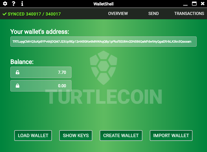 As of now, this wallet contains the basic functions required to operate with TurtleCoin, this includes: