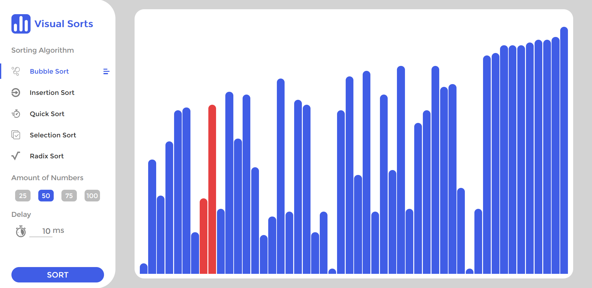 Visual Sorting Visual Sorting é um projeto que mostra de forma visual alguns algorítimos de ordenação. Acesse visualsorts.netlify.app para visualizar o site. Contribuir Pull requests são bem-vindos. Por favor abrir um issue antes, para discutir o que gostaria de mudar.