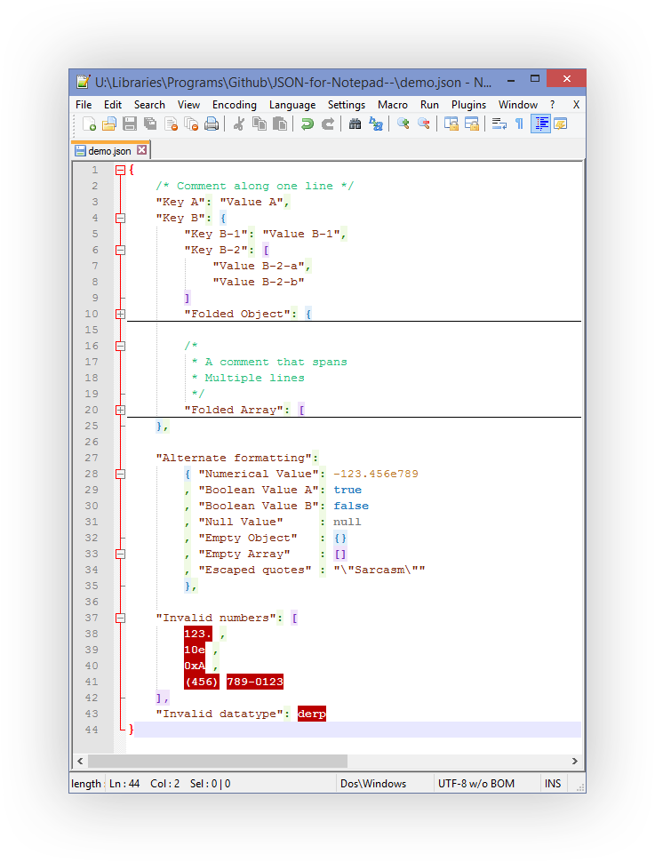 JSON.xmlby clicking "releases" up top, by cloning this reposiory, or by getting it straight from thelibfolder - Open Notepad++