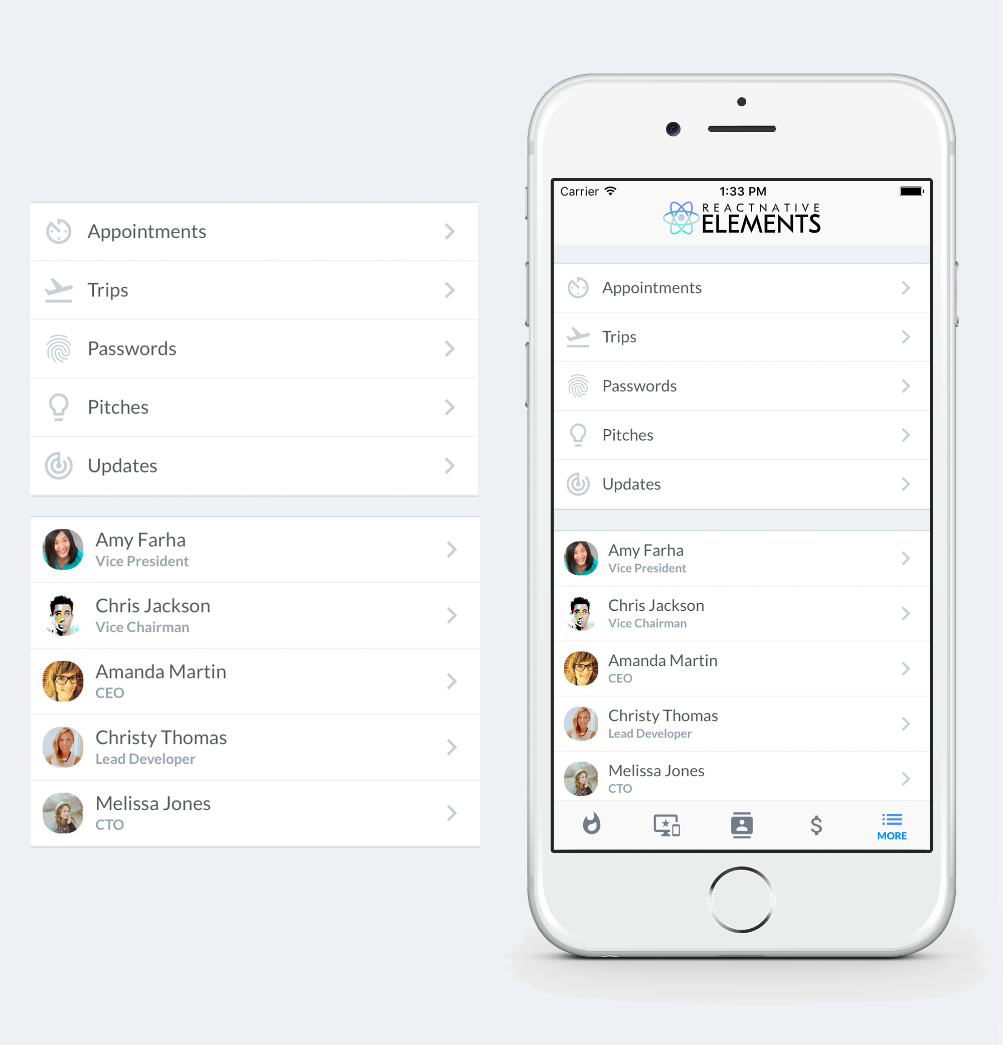 Check out the pre built and configured React Native Hackathon Starter Project which uses all of these elements.