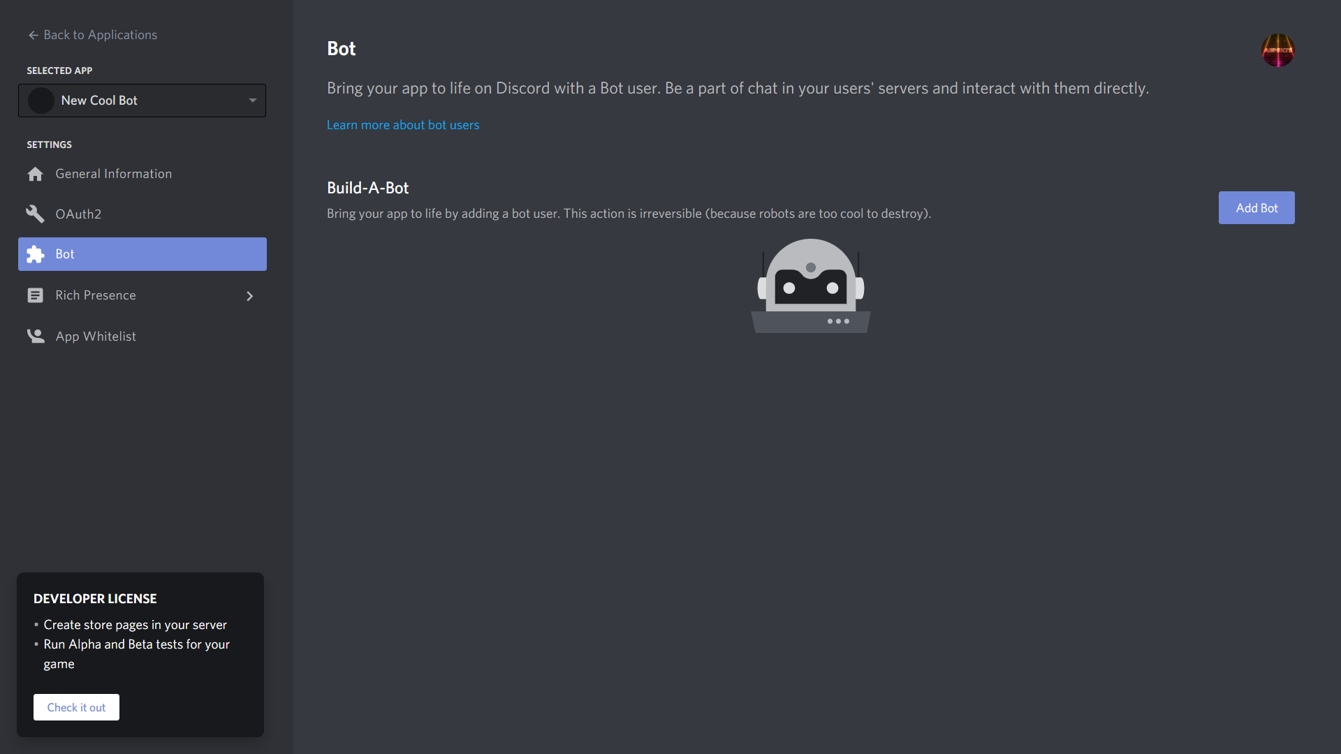 [Discord Developer Portal] First things first, we need to create the application that'll be used to make the bot.