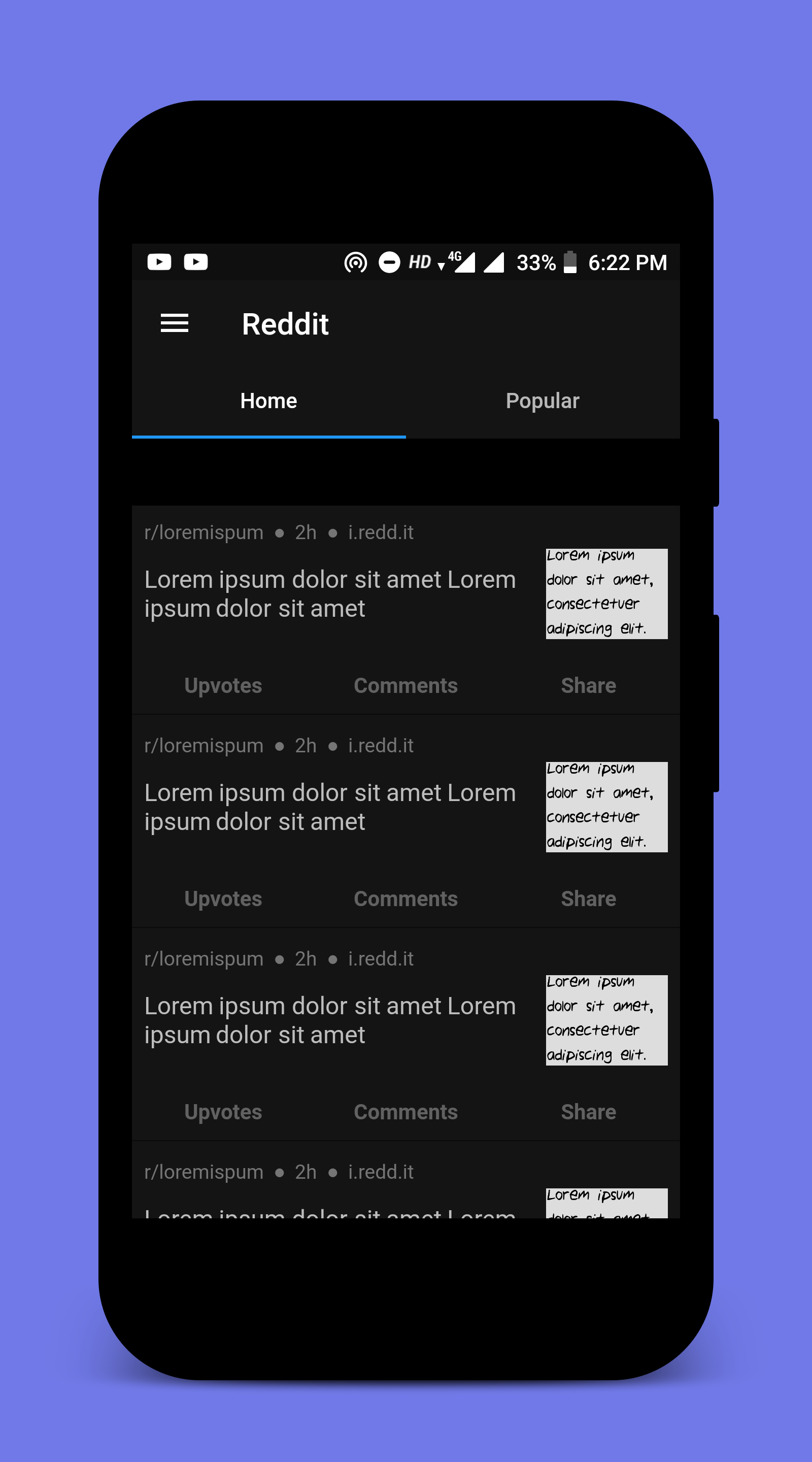 Clone of Reddit App in Flutter (Currently only Home Page, Work in Progress)