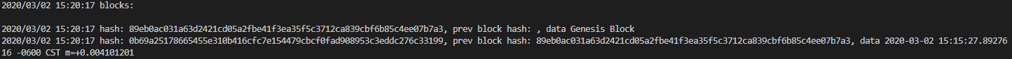 When running --list for the first time the genesis block will be created.