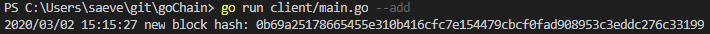 Running --add will create a new block